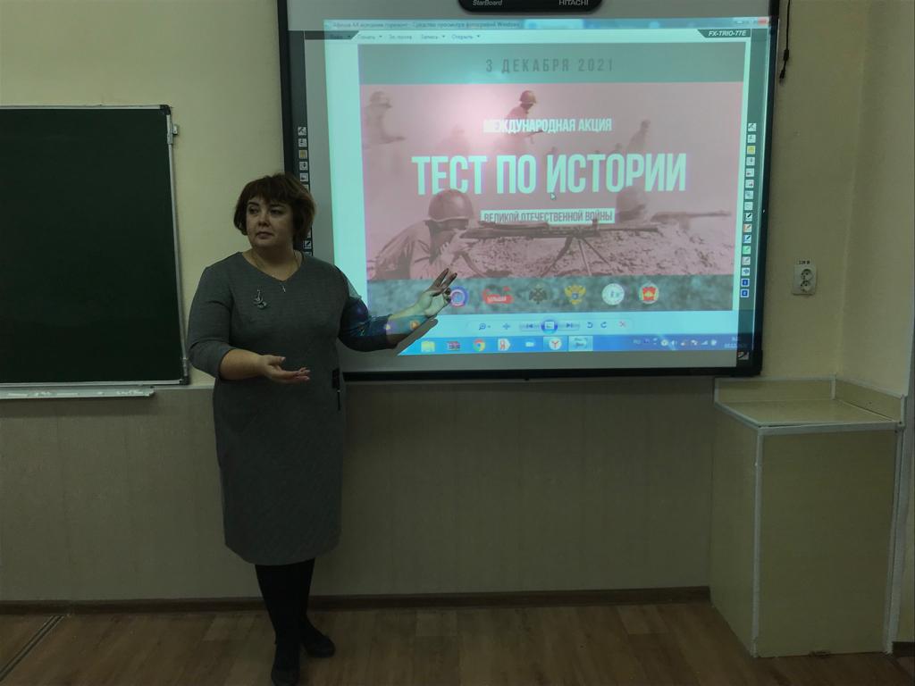 3 декабря 2021 года, в день Неизвестного солдата, обучающиеся 10А, 10Б, 11Б классов МБОУ «СОШ №7 г. Лениногорска» приняли участие в традиционной международной акции «Тест по истории Великой Отечественной войны», которую проводит Молодежный парламент при Государственной Думе с 2015 года. Она проводится с целью оценки уровня исторической грамотности граждан Российской Федерации, соотечественников, проживающих за рубежом, иностранных граждан о Великой Отечественной войне. Участникам было предложено проверить знания об истории Великой Отечественной войны. В задания входило 30 вопросов обо всех периодах войны. Каждый участник по итогам прохождения теста получил сертификат. Вся информация об акции размещена на сайте Теста – https://big-history.ru (или БольшаяИстория.рф).