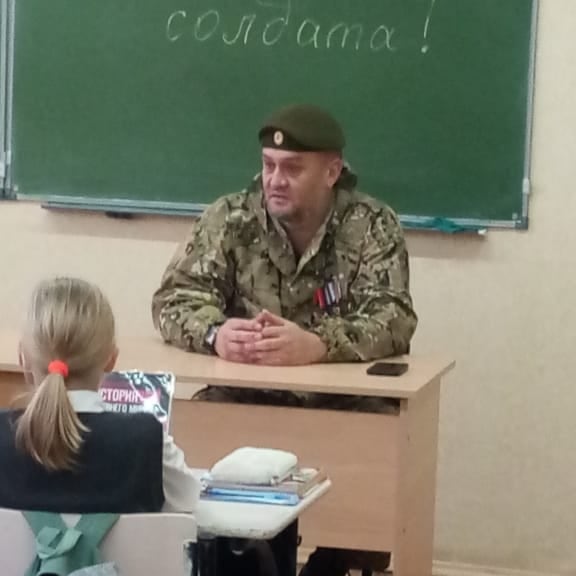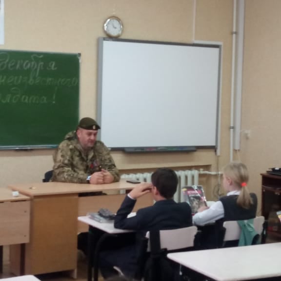 В рамках Дня неизвестного солдата в 5Г классе проведена встреча с ветераном военной разведки,майором в запасе,членом правления ,,Боевого братства" Мурадовым Р.Ш.