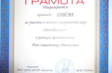 Сегодня, в рамках празднования Дня защитника Отечества на стадионе "Юность" состоялась военно-спортивная игра "Новобранцы", где приняли участие ребята 8 А класса нашей школы (руководитель: Е.И.Жакова).