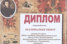 3 июня состоялся Межрегиональный фестиваль - конкурс «Пушкинские чтения». Конкурс проходил в целях развития творческого потенциала учащихся, выявления талантливых, одаренных детей и приобщения их к творческой деятельности, развития интереса к творчеству А.С.Пушкина, в целях сохранения творческого наследия русской поэзии. В Фестивале - конкурсе приняло участие более 120 работ. Ученик 8а класса нашей школы Шаливалиев Тимур (руководитель: Закирова Гульшат Шамиловна) занял заслуженное 3 место. Дальнейших успехов тебе, Тимур!