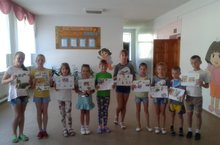 Утро по традиции началось с зарядки. Была проведена линейка, на которой начальник пришкольного лагеря познакомила детей с планом мероприятий на день. Были подведены итоги вчерашнего конкурса коллажей на тему ЗОЖ. Отмечены лучшие работы, а также все участники.