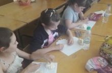 С утра, как и всю неделю, ребята делали зарядку. На линейке начальник пришкольного лагеря познакомила с планом на день. Воспитатели провели инструктажи. После завтрака ребята изготовили поделки из природного материала и пластилина, затем играли в подвижные игры в спортивном зале.