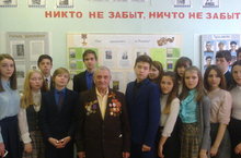 « Герой живет рядом». Где состоялась Встреча с ветераном Великой Отечественной войны Гуськовым А.Г. На этой встрече Александр Григорьевич рассказал учащимся 8 «А» и 3 «В» классов о трудных военных годах. Он призвал учащихся быть дружными и сплоченными между собой Так как эти качества дали силы Советскому народу победить эту проклятую войну.