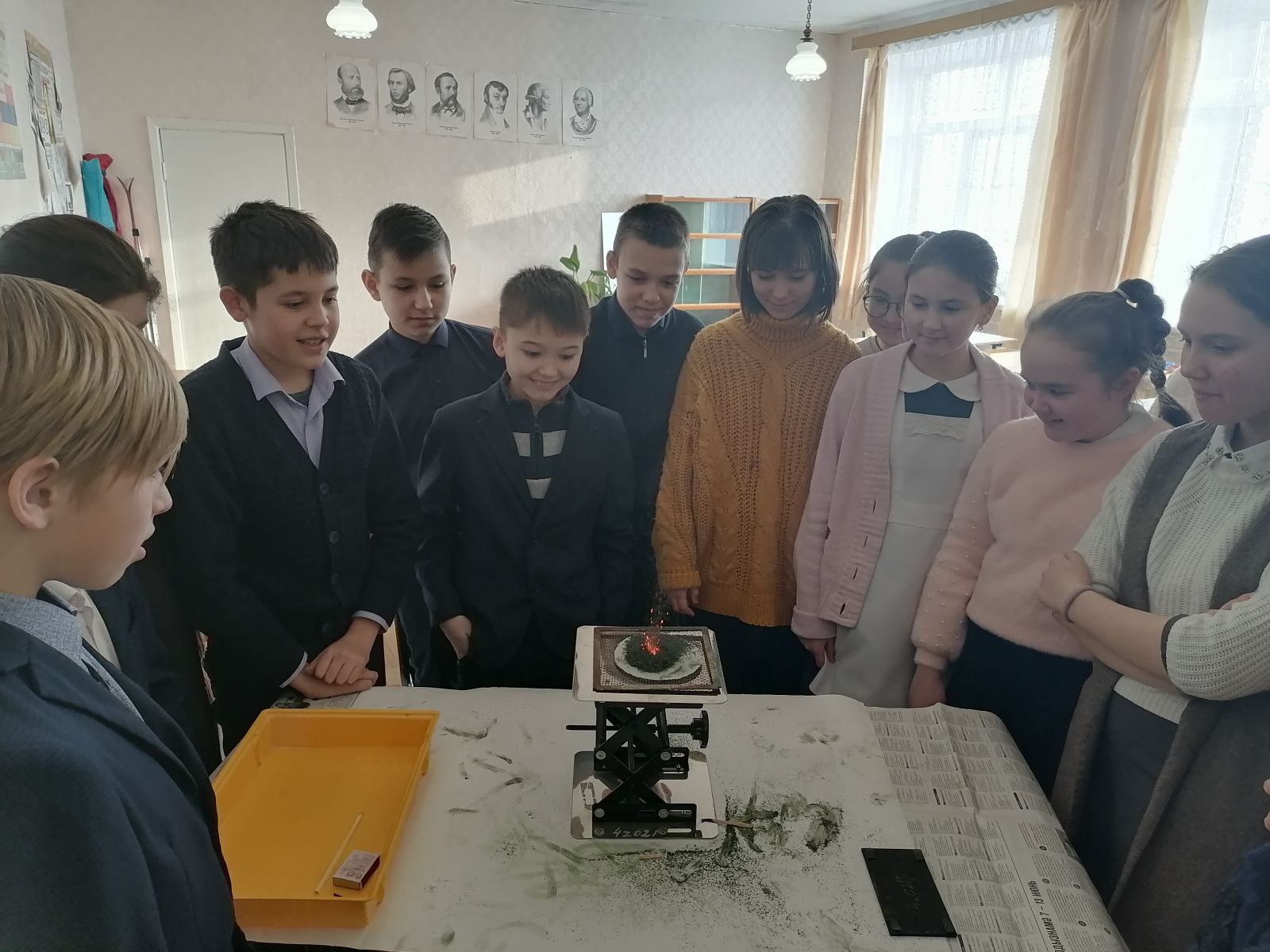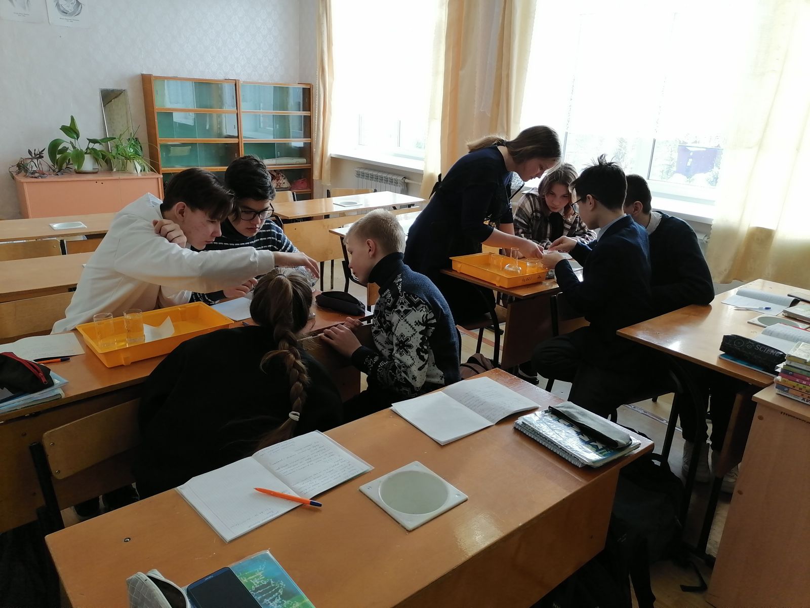 Учащиеся 8в класса работали над выполнением химических опытов. Проверяли и анализировали результаты своей работы.