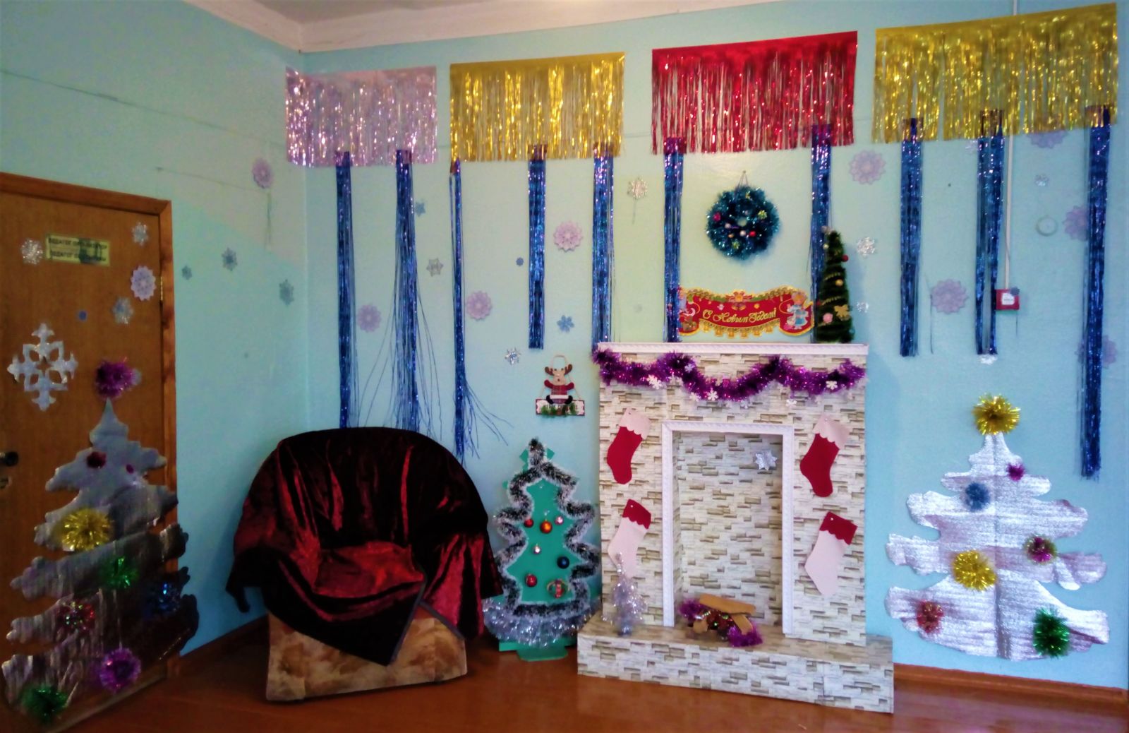 В преддверии нового года, чтобы создать атмосферу праздника, мы не только составляем интересный сценарий, но и украшаем школу. Мишура, снежинки, сказочные персонажи являются прекрасным дополнением к торжеству.