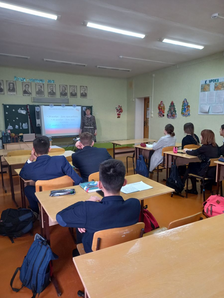 В 5 классах прошли мероприятия, посвященные Дню прав человека. Учитель истории и обществознания Гиматдинова Р.Ф. провела это мероприятие в виде интерактивной игры. Играя учащиеся знакомились со своими правами и обязанностями, разбирали ситуации из общественной жизни, разгадывали кроссворд. Цели данного мероприятия: воспитание правовой грамотности учащихся, учить учащихся определять, что такое «можно», а что такое «нельзя» в школе; формировать коммуникативные умения школьников.