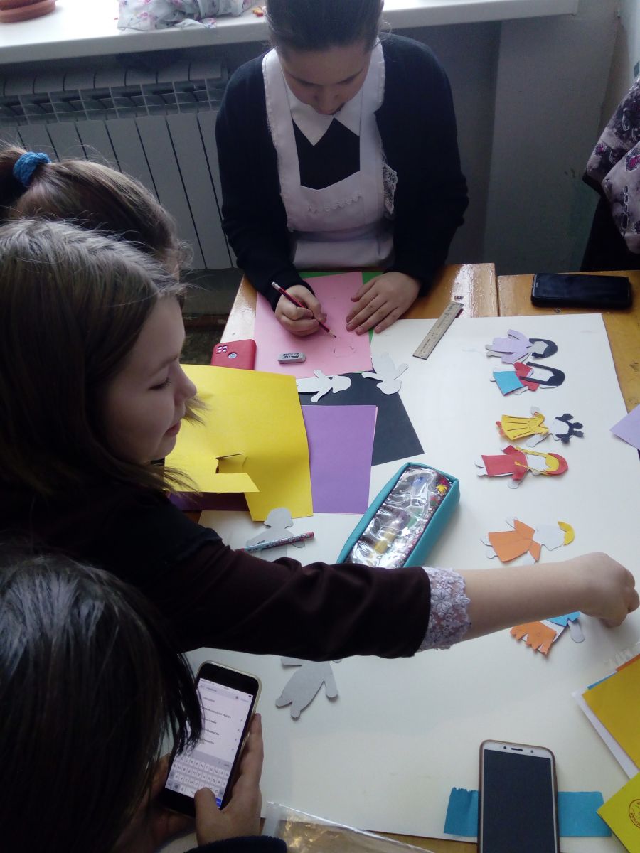 Участники кружка “Проектирование в социальной среде” за работой над проектом “Мы вместе”.