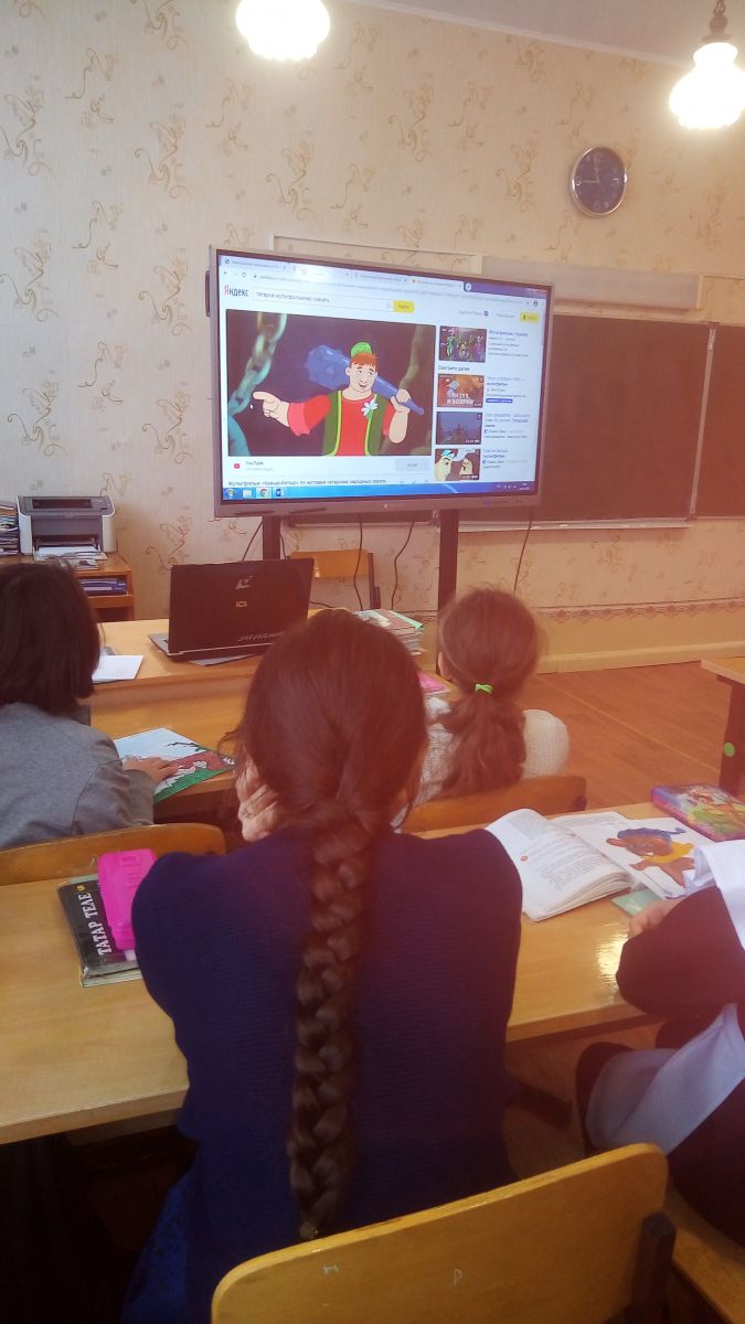 23 нче гыйнвар көнне 5-6 сыйныф укучылары татарча мультфильмнар карадылар. Бу мультфильмнардагы вакыйгалар балаларны дөрес тәрбияләргә,аларның фикерләү дәрәҗәсен, фантазияләрен үстерергә, дөньяны танып белергә өйрәтә.