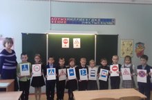 В 1-В классе прошел классный час по теме «Веселая дорожная азбука». Дети просмотрели мультфильмы по безопасности дорожного движения, повторяли дорожные знаки, сигналы светофора, правила поведения в общественном транспорте, рисовали рисунки. Была проведена беседа на тему «Безопасный маршрут от дома до школы».