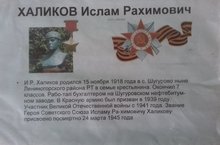 15 ноября 2016 года – 98 год со дня рождения Героя Советского Союза ХаликоваИ. Р. Этому событию было приурочено занятие кружка «Мой родной край» (рук. Кириллова Л. А.). Занятия прошли в школьной библиотеке (зав. Шайдуллина Г.В.), где учащиеся 6 а, 6 б классов познакомились с жизненным и военным путями героя. Шайдуллина Г. В. представила монографии и документы, рассказывающие о герое.