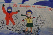 В начальной школе организована выставка рисунков школьного этапа республиканского конкурса «Буду бдительным на льду».