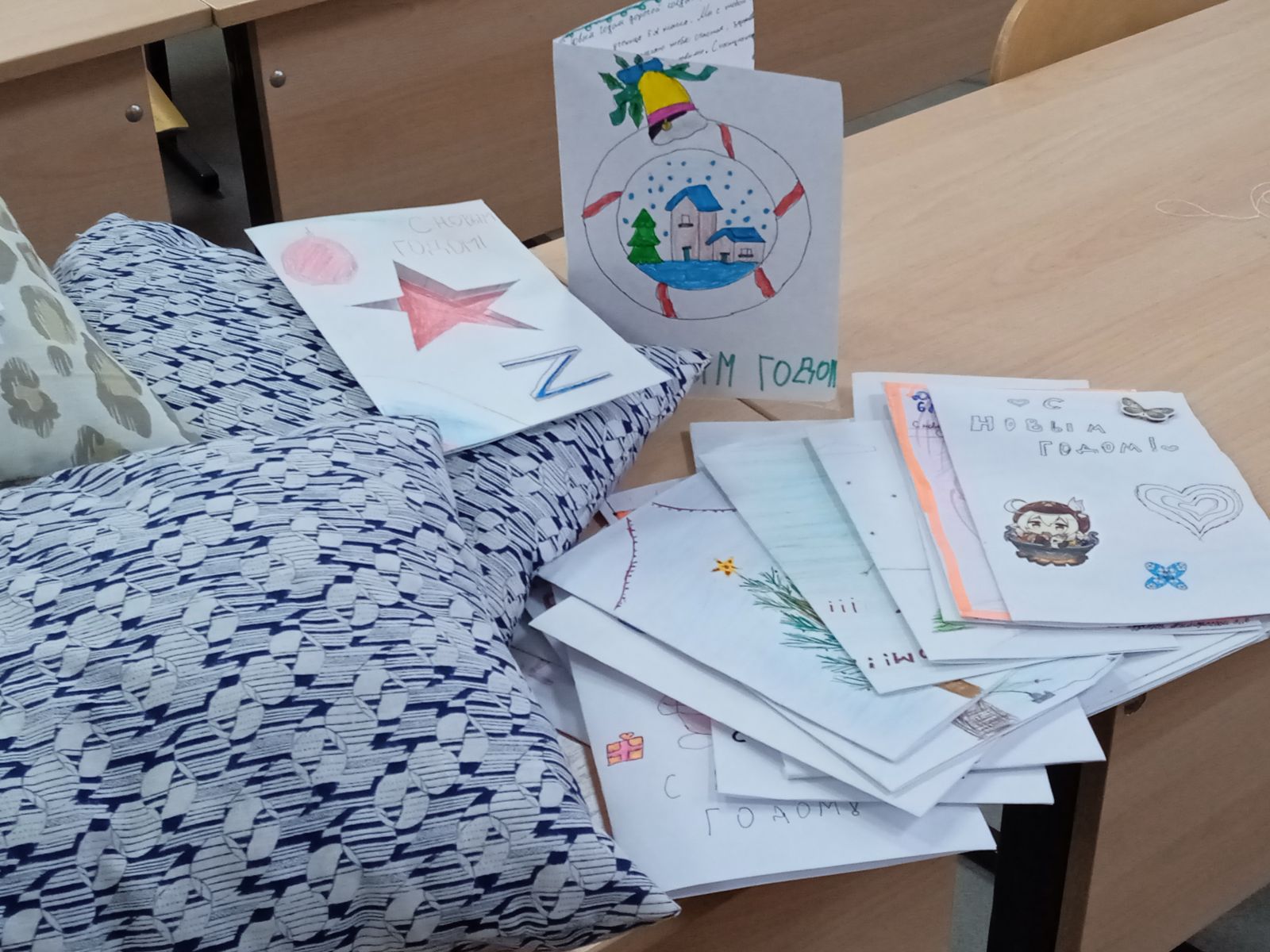 Школьники МБОУ «Шугуровская СОШ имени В.П. Чкалова» подготовили новогодние поздравительные открытки со словами поддержки российским солдатам.