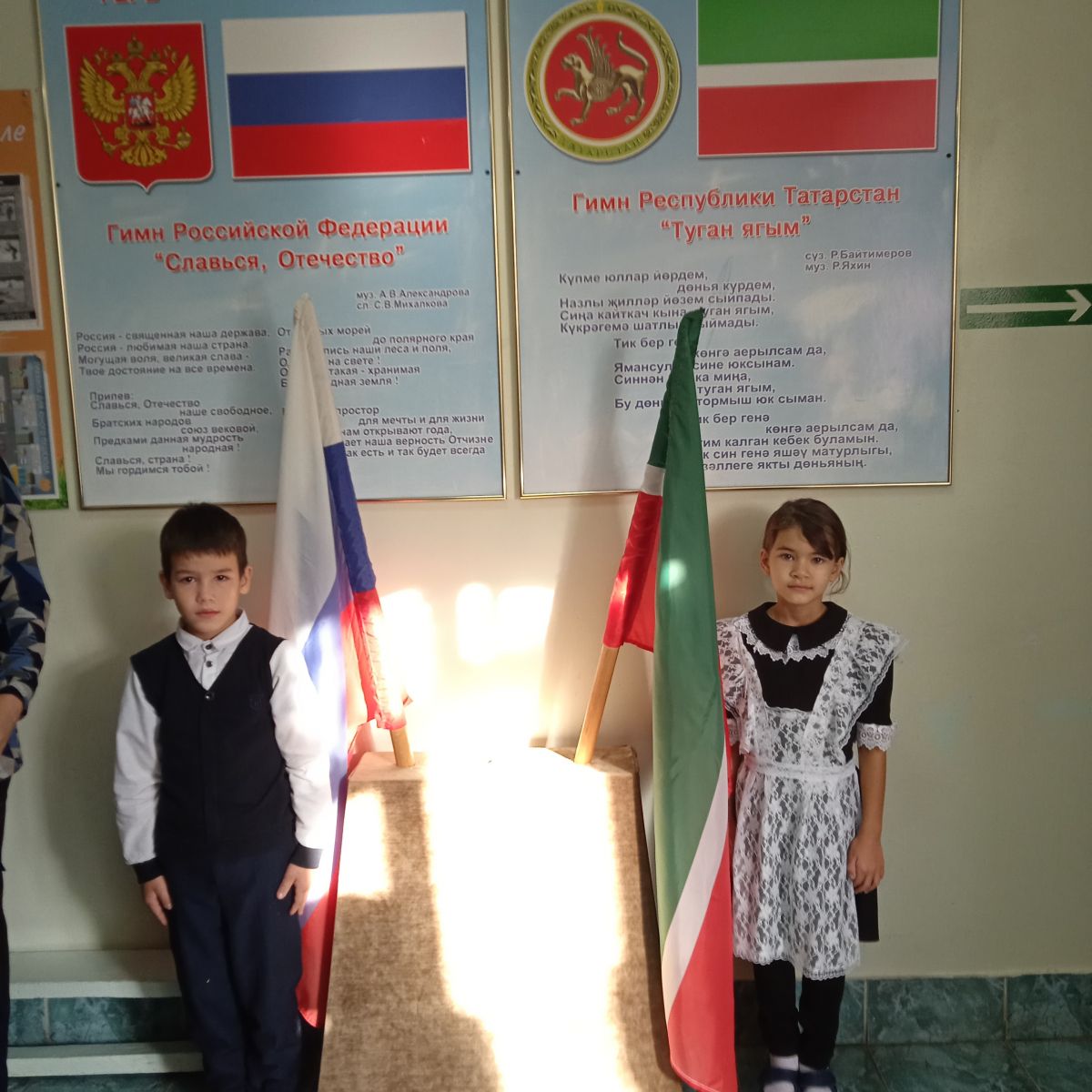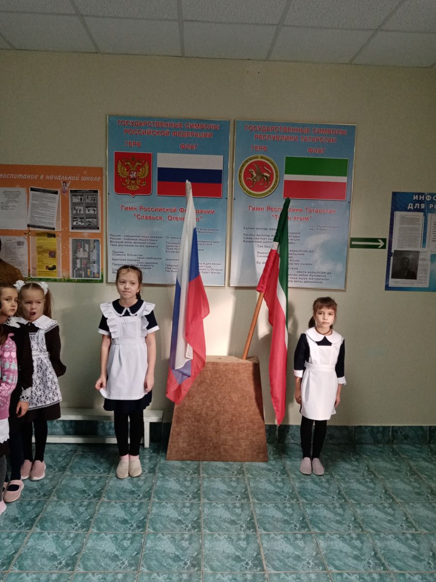 В начальной школе МБОУ «Шугуровская СОШ имени В.П.Чкалова» учебная неделя (10.10.2022г.) началась с торжественной линейки. Почётное право внести флаги РФ и РТ предоставилось ученикам 2А класса Шамсутдиновой Диляре и Салахову Риналю.