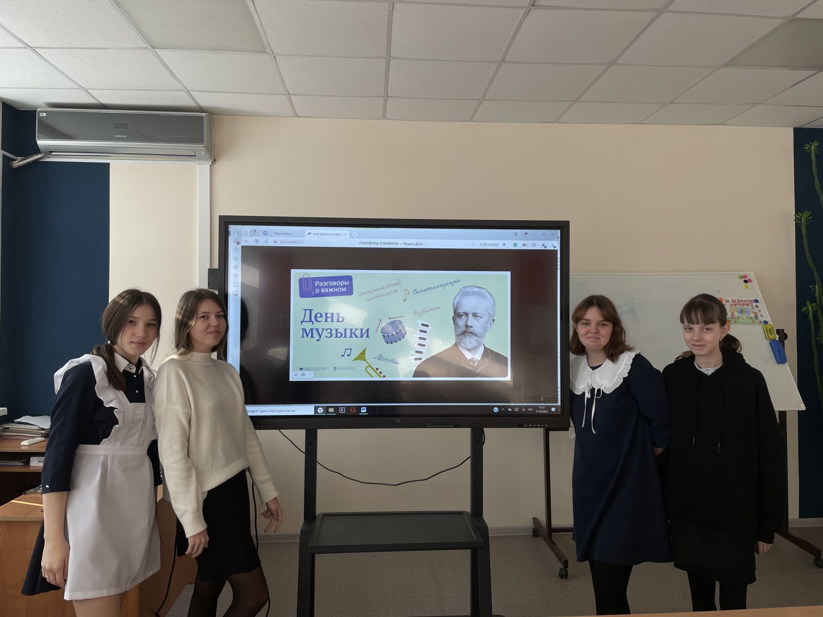 17 октября прошло очередное занятие из курса «Разговор о важном» и было посвящено Дню Музыки. В 9 В классе занятие прошло при использовании видеофрагментов, аудиозаписей музыкальных произведений, мультимедийной презентации, включает в себя анализ информации, групповую работу с аудиофрагментами и игру.