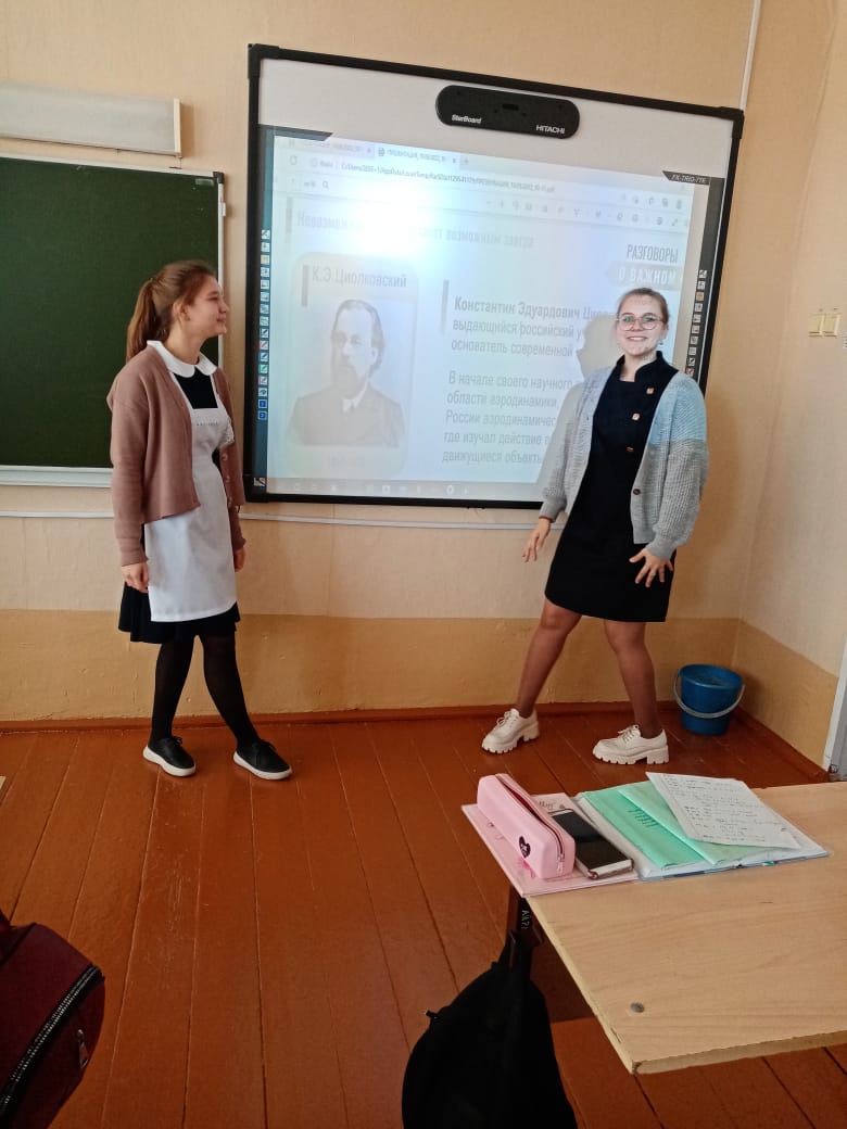 19.09.2022 года в 10 А классе (классный руководитель Кабирова Гульшат Азгаровна) в рамках «Разговора о важном» прошло внеурочное занятие «Невозможное сегодня станет возможным завтра» (К.Э. Циолковский), приуроченный к 165- летию рождения К.Э. Циолковского.