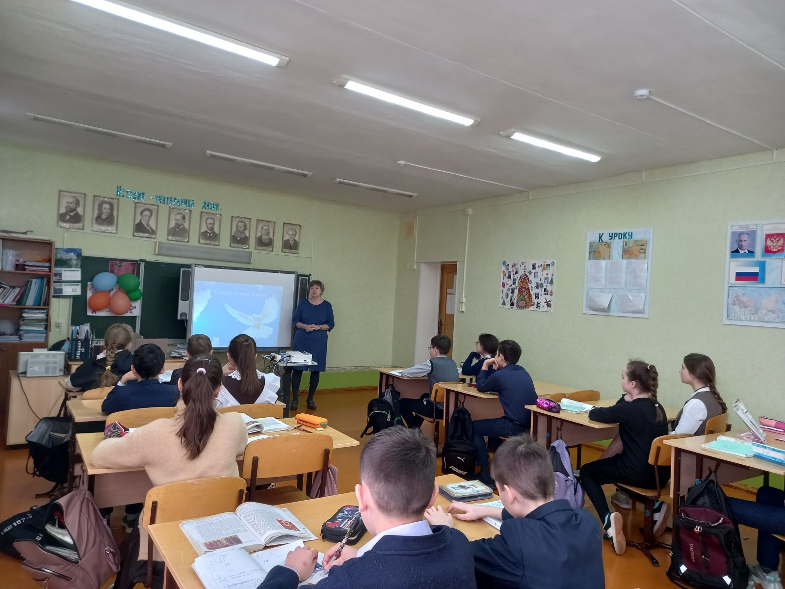 В 5 классах учителем истории и обществознания Гиматдиновой Р.Ф. были организованы уроки «Герой нашего времени». Цель: формирование понятий «герой», «патриотизм», активной жизненной позиции. Задачи: дать представление о понятиях «герой», «подвиг», раскрыть образ героя, развивать умение составлять портрет героя, отбирать качества характера, продолжать воспитывать чувство патриотизма.