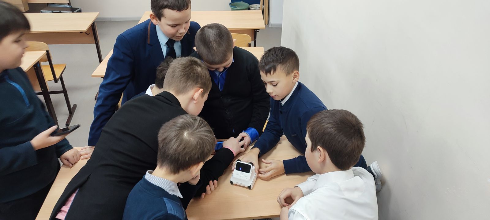 Ученики 5 класса обучаются программированию при помощи робота make block.
