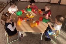 Максат: кирпечләрне бер-берсенә тар яктан куярга өйрәтү. Йөк машинасын конструкцияләргә өйрәнү, вак моториканы, тактиль хисләрне үстерергә, сабырлык тәрбияләргә.