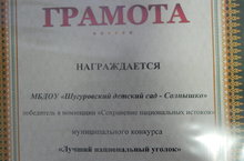 Детский сад принял участие в муниципальном конкурсе "Лучший национальный уголок" и победил в номинации "Сохранение национальных истоков"