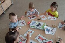 В ясельной группе прошло занимательное занятие "Домашние животные". Ребята познакомились с домашними животными. Узнали, чем они питаются, что любят делать, и чем полезны для человека.Так же дети узнавали животных, называя отдельные части: хвостик, ушки, глазки.Закрепляли умения различать животных путем осязательного и зрительного обследования.Для развития речи воспитанники учились слушать литературное произведение Сутеева В. «Кто сказал "мяу" ? В сопровождении показа картинок, имитировали голоса животных "гав-гав," мяу-мяу"," му-му" и т. д.Разговаривали о том, как нужно относиться к домашним питомца. Формировали доброе и бережное отношение, эмоциональную отзывчивость к окружающему миру.