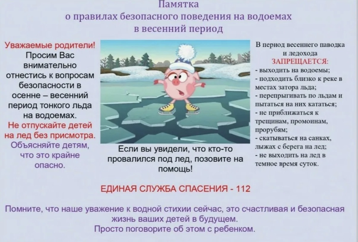 Памятка о правилах безопасного поведения на водных объектах в весенний период❗