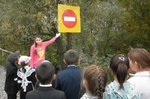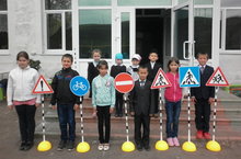 Члены отряда ЮИДД Вафина Аделина, Гаязова Айлина, Вильданова Эльвира,Кенжаев Данила подготовили для детей игру-эстафету «Что я знаю о дороге».