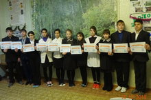 5. В конце урока были подведены итоги по участию школьников в природоохранной деятельности в зимнее время. Самые активные участники урока и выступившие: Зиатдинова М.,Ситдикова Э.,Нагиев Э, Валиев Х., Хабибуллина Р, Вильданов Р., Галимова Д.,Мельничук А. получили поощрения: Дипломы победителей и призеров викторины .