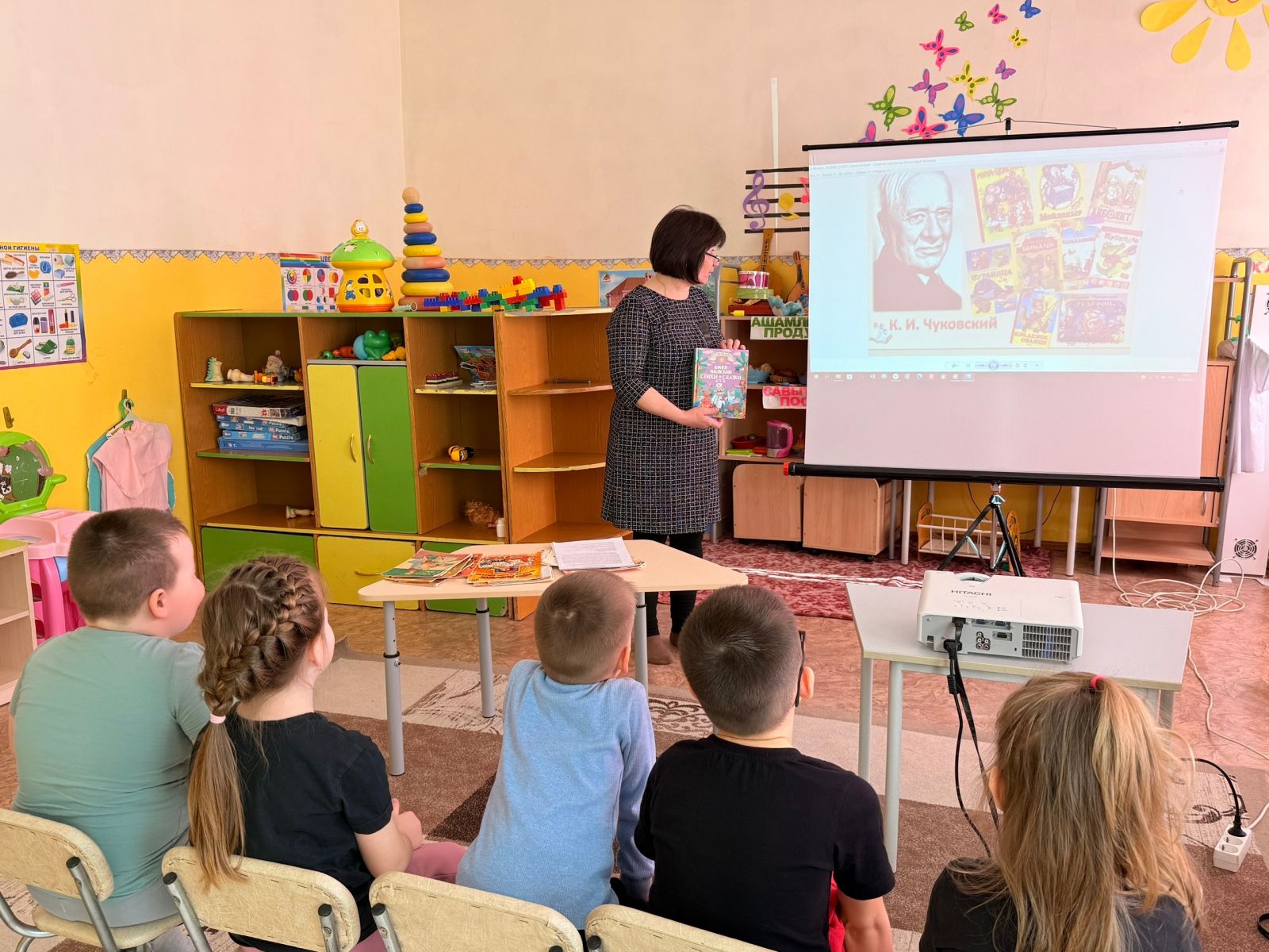 Декада недели детской книги.Это праздник всех тех, кто любит читать, праздник детства, праздник для писателей, издателей и библиотекарей. Праздник любознательных детей и взрослых, влюбленных в книгу, праздник веселых приключений, новых литературных открытий, встреч с интересными людьми. Первые «Книжкины именины» состоялись в Москве 26 марта 1943 году. По инициативе детского писателя Льва Кассиля состоялась большая встреча писателей и юных читателей. Активное участие в празднике приняли Самуил Маршак, Сергей Михалков, Агния Барто, Михаил Пришвин. А с 1944 года стало ясно, что одного дня мало – так родилась Неделя детской и юношеской книги. В рамках данной даты, сегодня наш детский сад посетила библиотекарь Давлетшина А.Н., и провела «Книжкины именины».