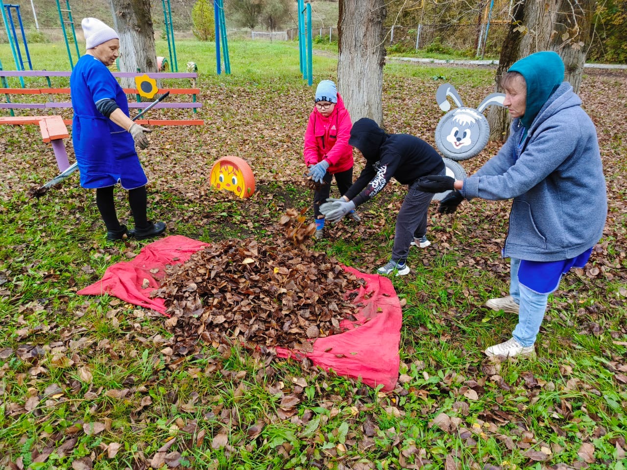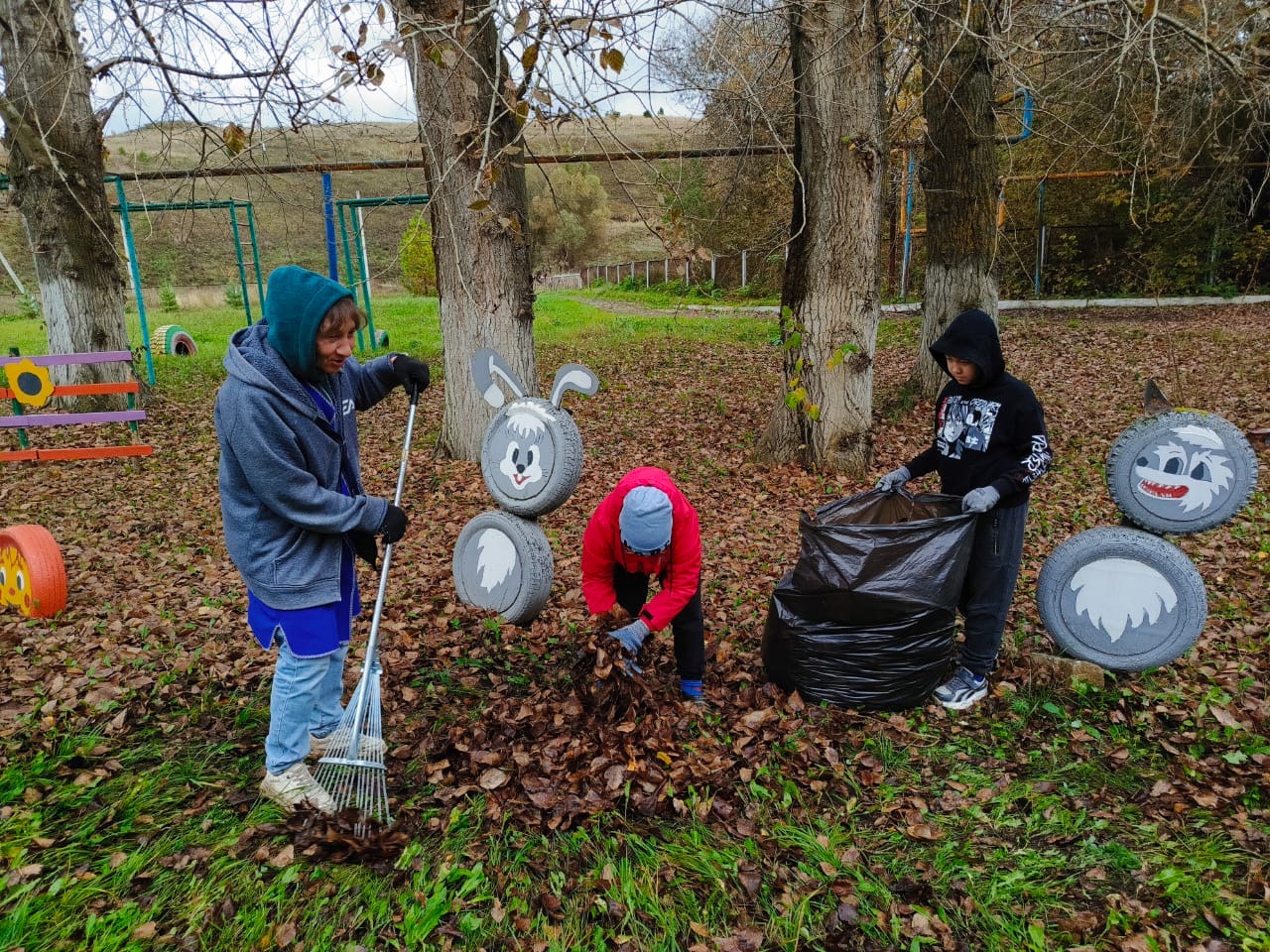 Ребята дружно очистили школьный двор от мусора, листьев и веток, убрали старые листья и сухие ветки деревьев. Это позволило сделать территорию школы ещё привлекательнее и уютнее.