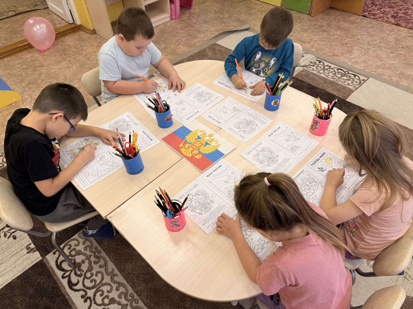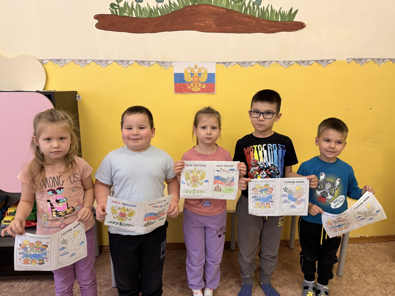 День народного единства связан с одним из важнейших событий российской истории: освобождением Москвы от польских интервентов в 1612 году и завершением Смутного времени. Этот период конца XVI – начала XVII века стал для страны временем тяжёлых испытаний: после смерти царя Фёдора Иоанновича династия Рюриковичей пресеклась, в государстве начался династический кризис, вспыхнули голод и гражданские войны. Этим воспользовались другие державы – в первую очередь Речь Посполитая (нынешние Польша и Литва), войска которой заняли Смоленск и Москву. В связи с этим праздником : Дети дошкольного возраста активно участвовали в праздничных мероприятиях, посвящённых Дню народного единства. Они увлечённо разукрашивали государственный флаг России, проявляя творчество и интерес к истории своей Родины.