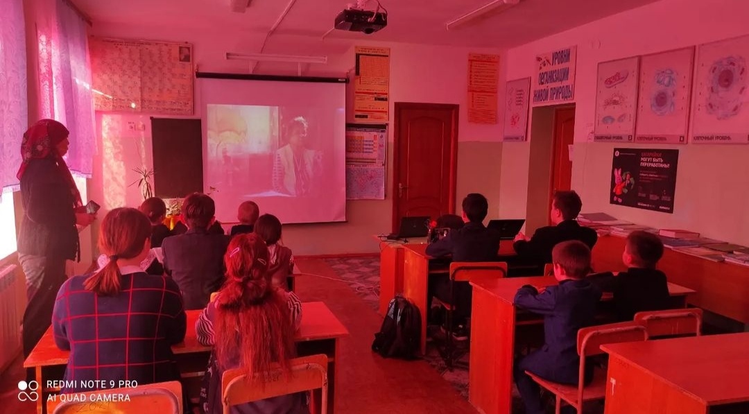 Учитель родного татарского языка и литературы Тахавова С.А. для учащихся 1-9 классов организовала просмотр видеофильма "Экскурсия в квартиру-музей Мусы Джалиля в г.Казань", показ презентации "Татар җырының Илһам исемле илһамы". Учащиеся познакомились с творчеством Ильгама Шакирова, прослушали его песни.