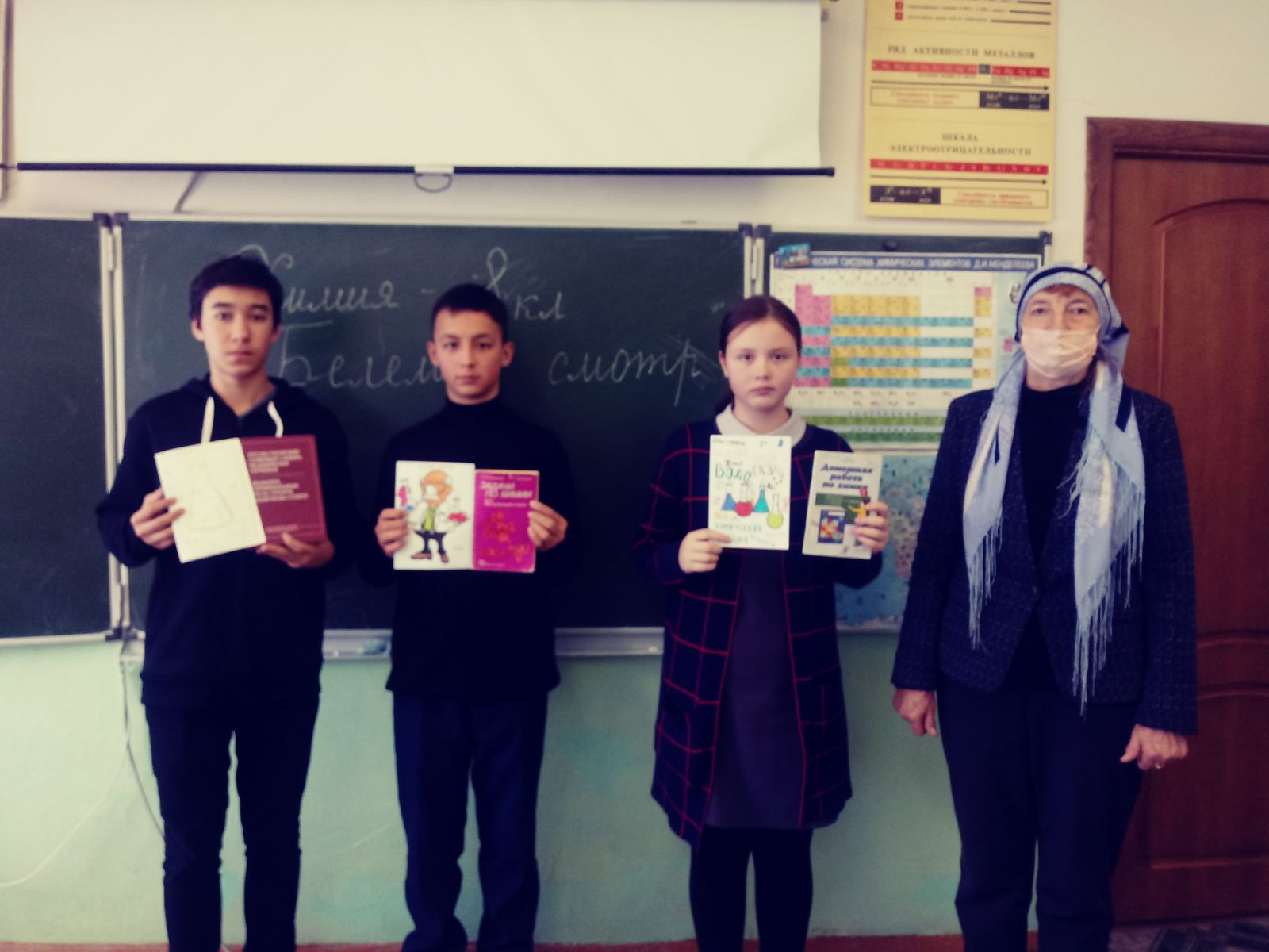 Учитель химии и биологии Ахметова Ф.А. вручила призы победителям и призерам. Все участники смотра получили сладкие призы.