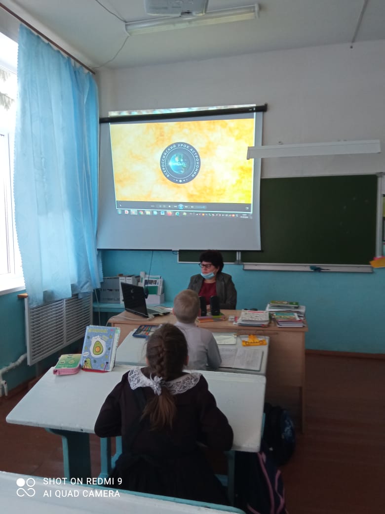Сегодня для учащихся 1-9 классов провели Всероссийский урок астрономии. Был организован просмотр видеороиков и презентаций.