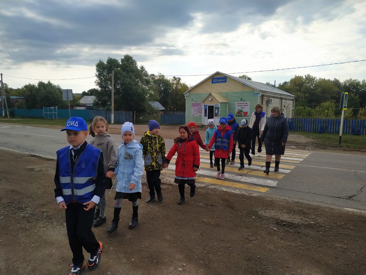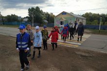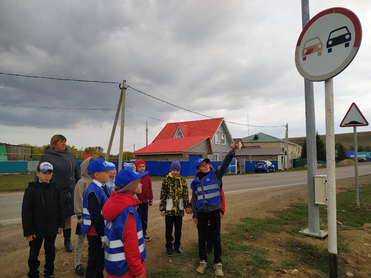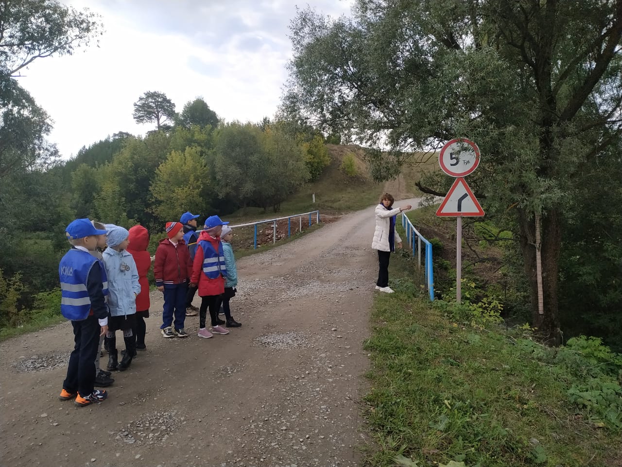 Члены отряда ЮИД для учащихся начальных классов организовали экскурсию по улицам села. Ознакомили младших школьников с дорожными знаками, с правилами передвижения по улицам, а также потренировались в правильном переходе дорог и моста.