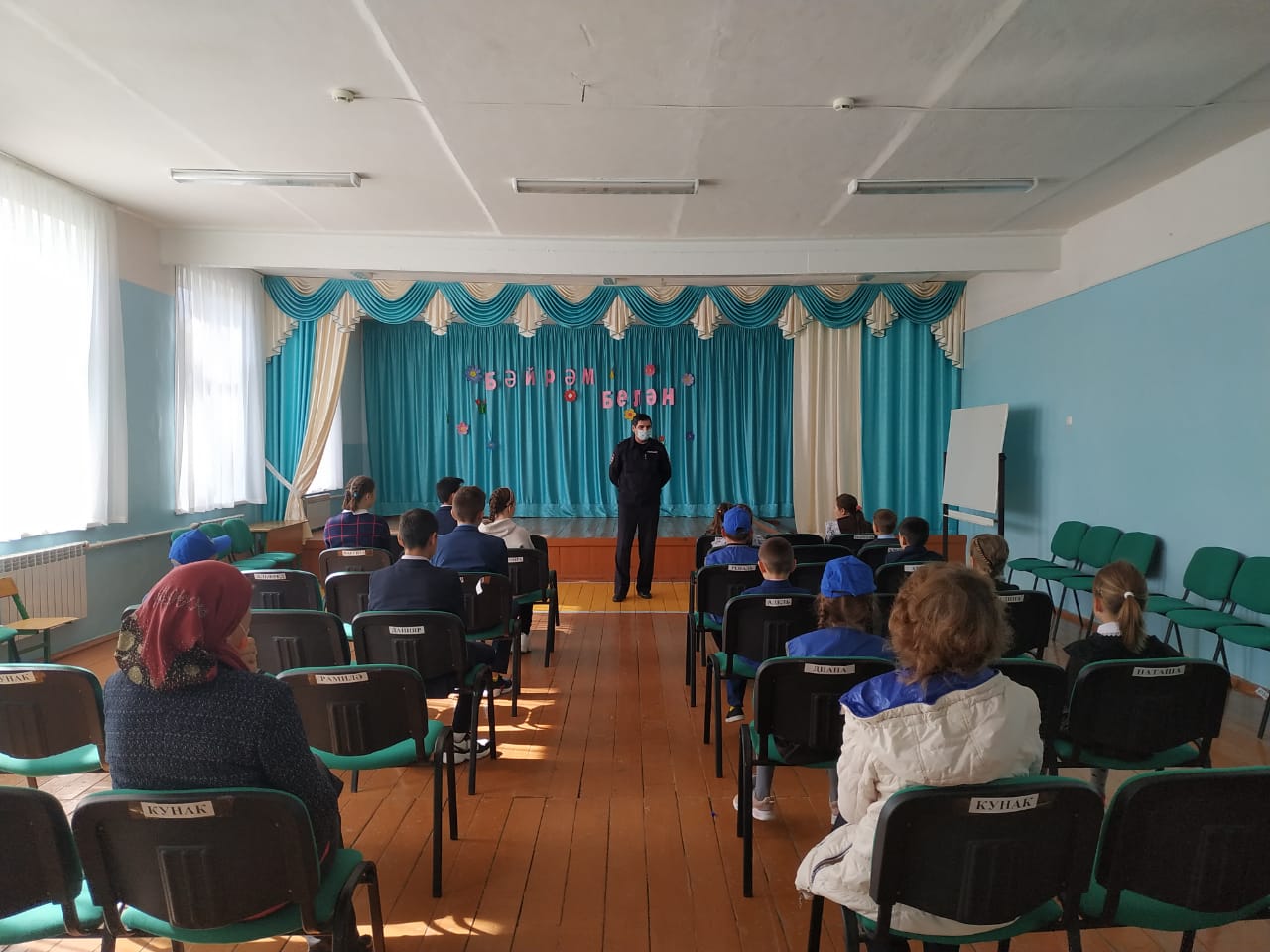 Куркынычсызлык айлыгы кысаларында бүген мәктәптә укучылар ПДН инспекторы Гарифуллин Р.С. белән очраштылар