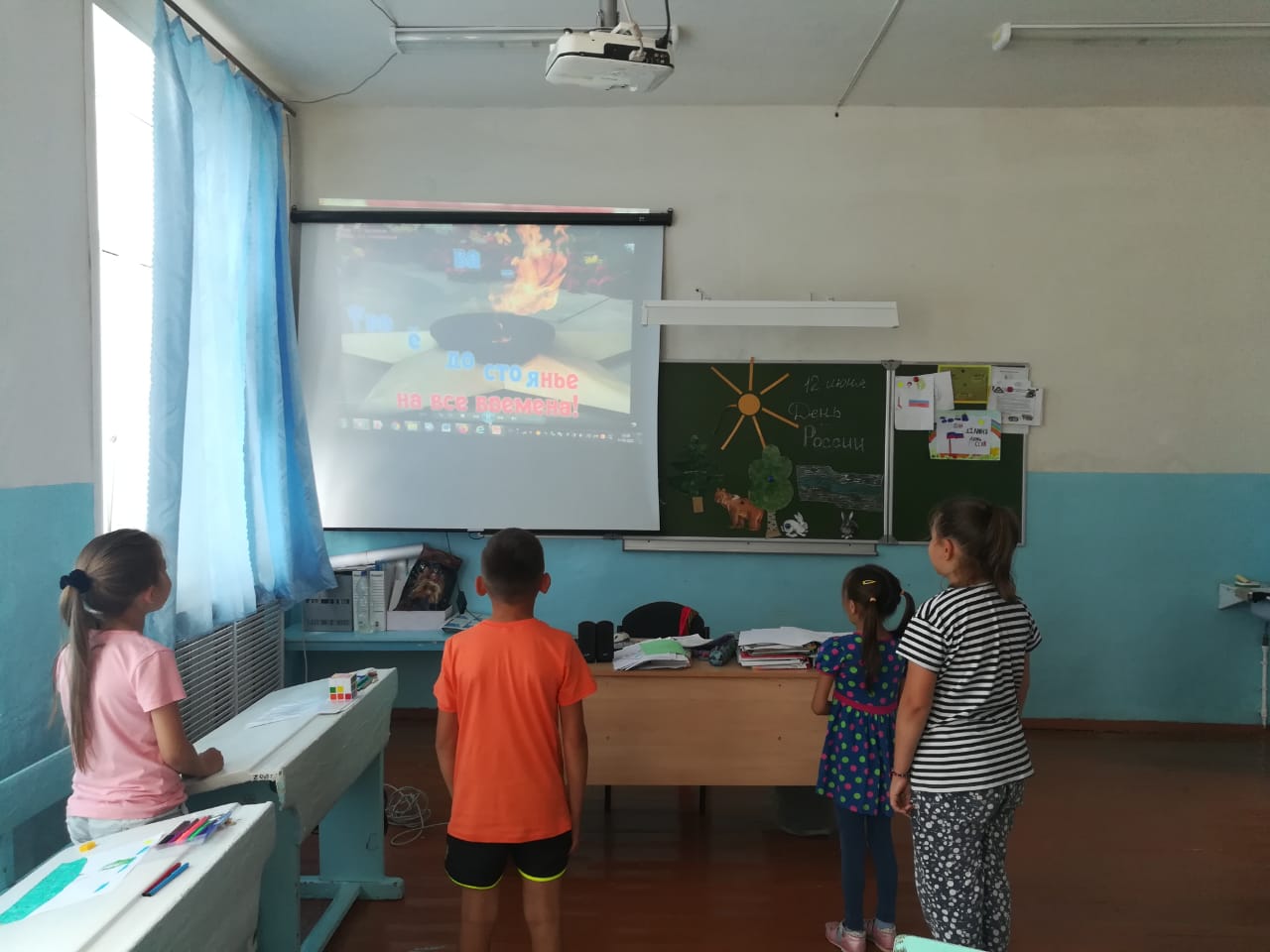 Накануне праздника в пришкольном лагере "Родничок" провели мероприятия, посвященные Дню России. День начался с флешмоба на песню "Родина моя". Далее провели викторину "Россия - Родина моя", конкурс рисунков.
