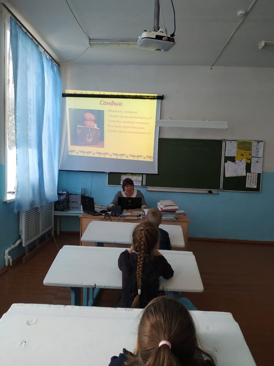 В рамках проведения месячника, посвященного Международному дню родного языка, 4 февраля в школе было проведено мероприятие под названием «Әбиемнең серле сандыгы”. Ребята познакомились с традициями татарского народа, украшениями и татарским костюмом. В конце играли в народные игры «Йөзек салыш», «Түбәтәй» и др. Закончили мероприятие татарской мини- дискотекой.