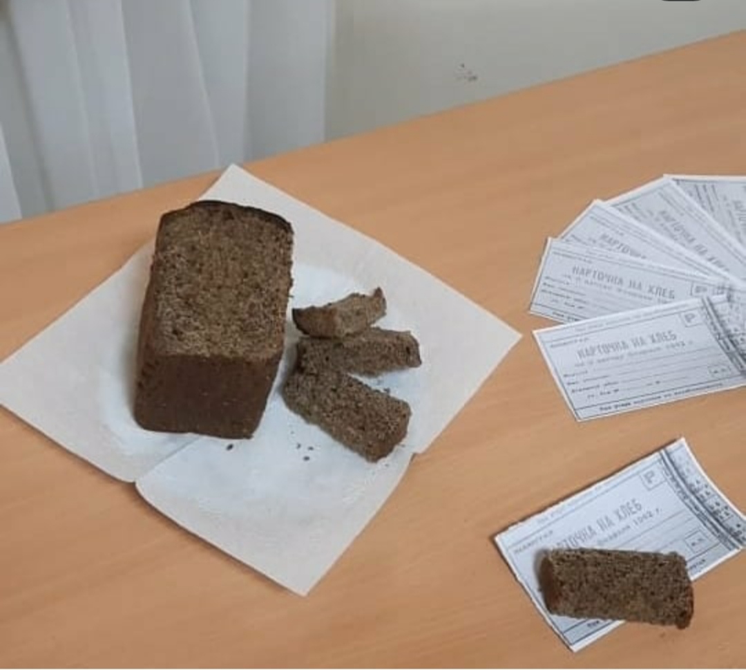 Также обучающимся были выданы талоны и символ Акции памяти - кусочек хлеба весом в 125 граммов в рамках реализации Всероссийской акции памяти «Блокадный хлеб».