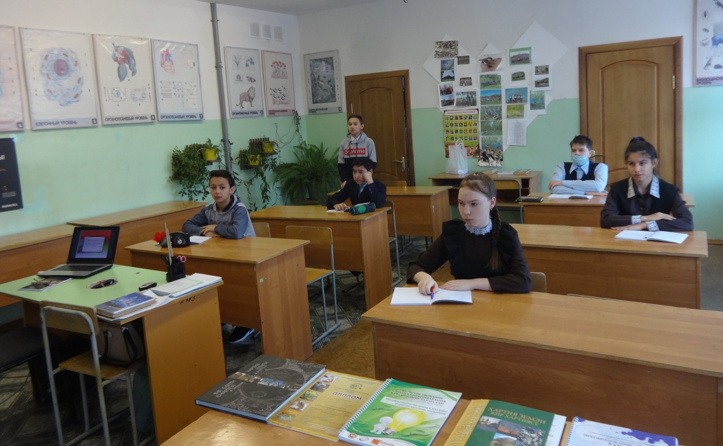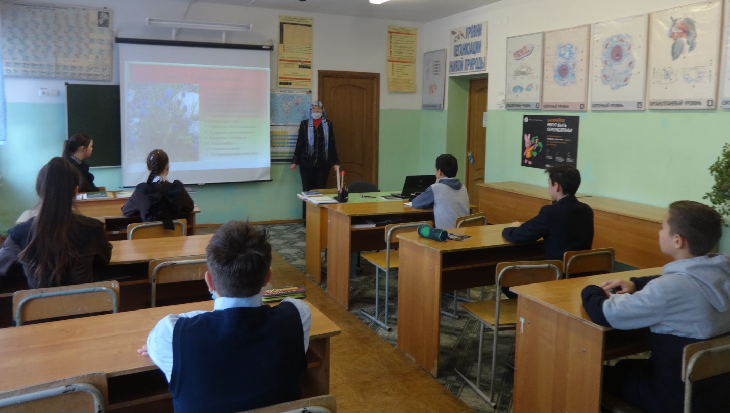 В целях воспитания бережного отношения к природе и окружающей среде в кабинете биологии школы прошел Всероссийский урок «Эколята – молодые защитники природы». Учитель биологии Ахметова Ф.А. акцентировала в своем выступлении о значении Хартии Земли. «Хартия земли – это документ, содержащий фундаментальные принципы создания в 21 веке справедливого, устойчивого и мирного глобального сообщества. Она направлена на то, чтобы пробудить в каждом человеке новое чувство взаимозависимости и всеобщей ответственности за процветание людей и всего живого сообщества. Чтобы человек смог сберечь себя и открыть дорогу многим поколениям, он должен сберечь Землю. Юные экологи – молодые защитники природы должны работать в этом направлении». Просмотр презентации «Красная книга РТ».