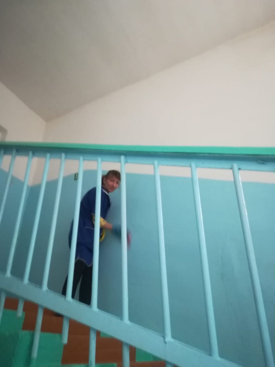 Сегодня в школе силами тех.персонала была проведена полная дезинфекция помещений, с применением дез.средств.