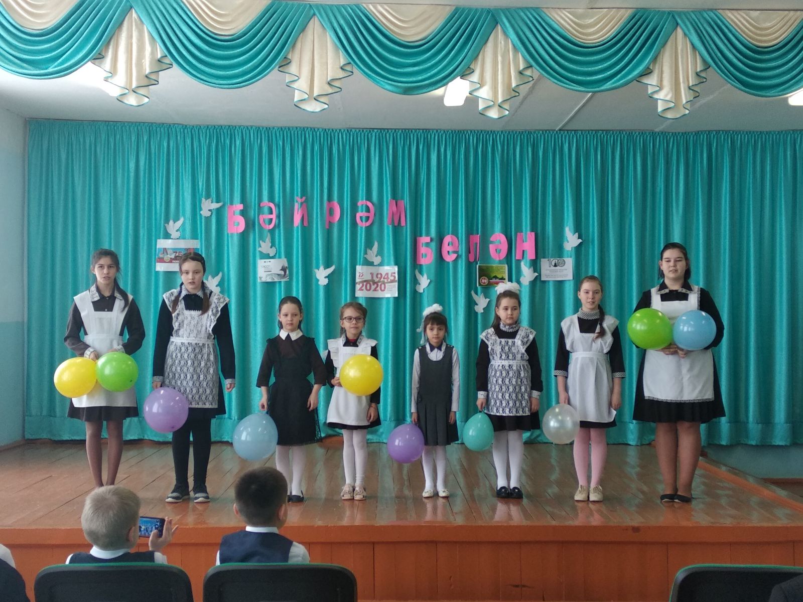 Сегодня в актовом зале школы прошел парад военных песен. Учащиеся 1-9 классов исполнили песни военных лет.