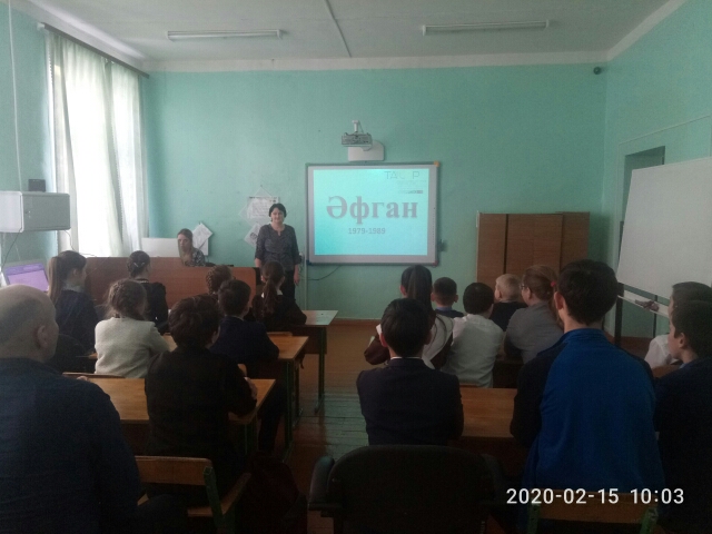 Учащимися 5-8 класса была подготовлена и продемонстрирована литературно-музыкальная композиция "Эхо Афганской войны". Дети прочитали стихотворения и спели песни, посвященные войне.