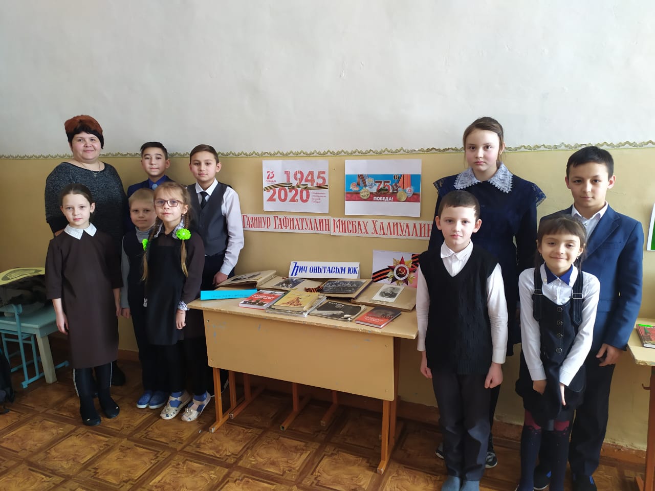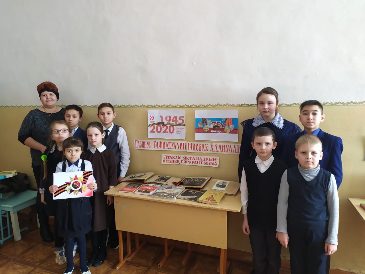 Авыл һәм мәктәп китапханәчеләре белән берлектә "Һич оныта алмыйм" дигән тема астында авылдашларыбыз Советлар Союзы геройлары Газинур Гафиятуллин һәм Мисбах Халиуллин батырлыкларына багышланган класс сәгатьләре узды.