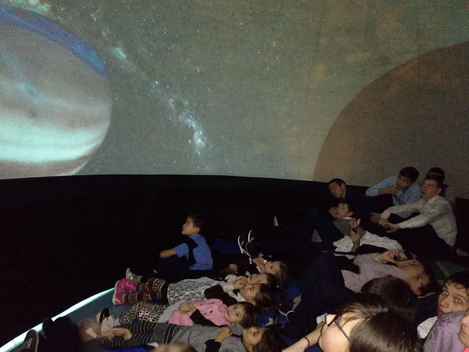 Учащимся была представлена новая программа по солнечной системе. Дети узнали о строении планет, о том, что на них находится, из чего они состоят. Параллельно по сюжету идет сравнительный анализ звезд ( их цвет, температура, размер). Красочное шоу, в процессе которого школьники узнали всю необходимую информацию.