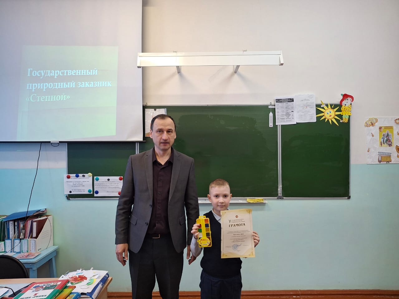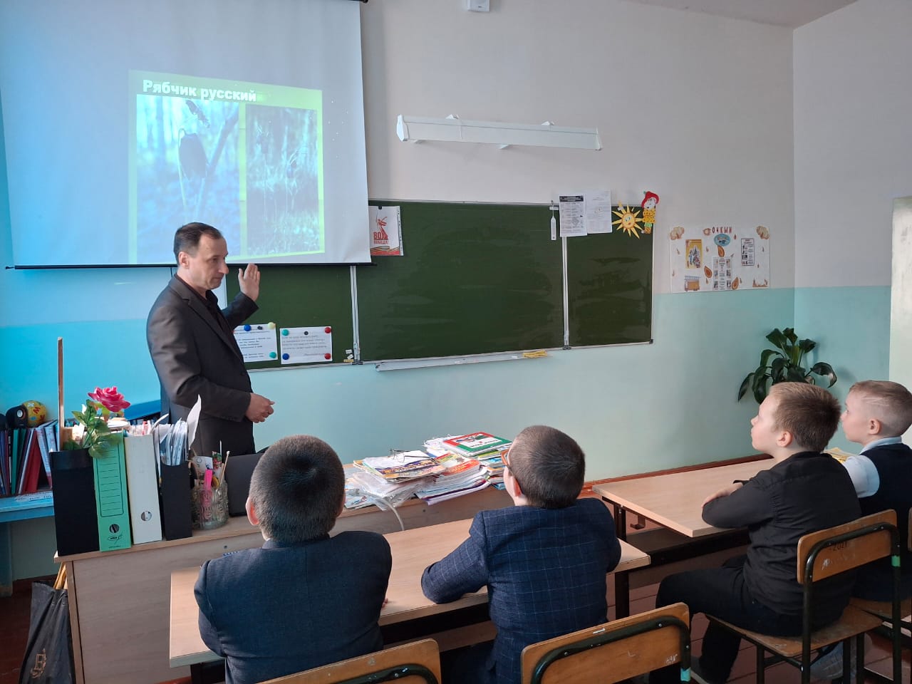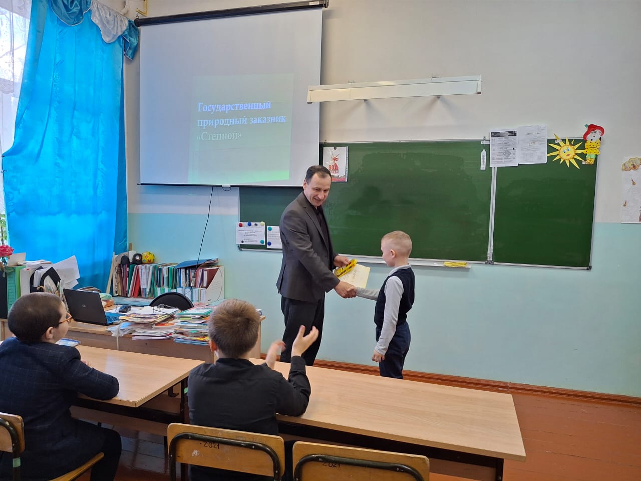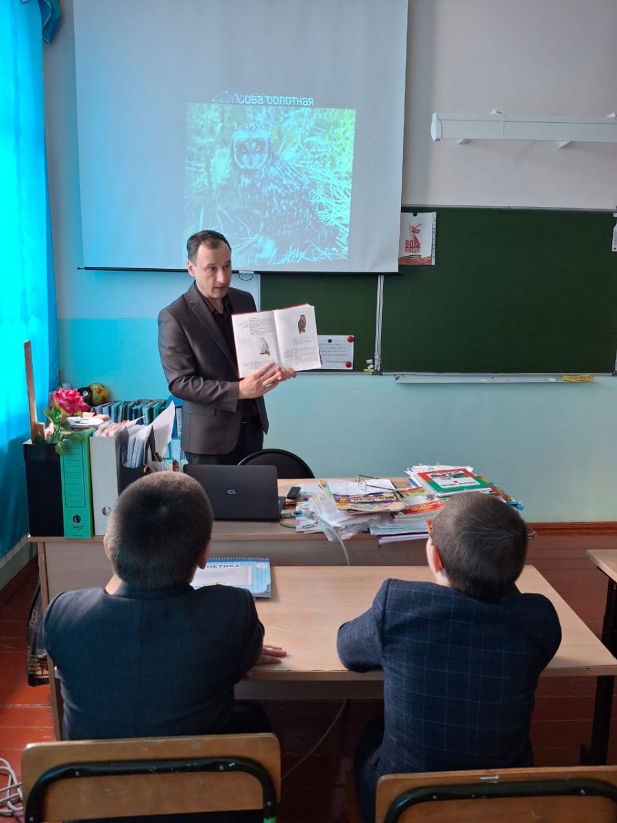 В нашей школе прошла встреча с государственным инспектором по охране природы ГПКЗ «Степной» имени А, И. Щеповских Галлямутдиновым Халилем Хамитовичом. Он рассказал о разновидностях растений и животных нашего края. Показал презентацию о Красной книге. В конце учащиеся получили ответы на интересующиеся их вопросы. Встреча была содержательной и полезной.