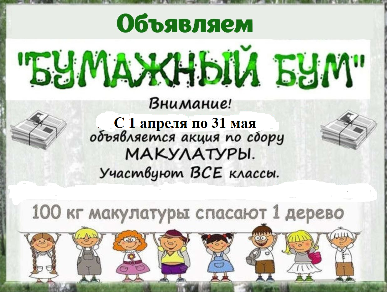 В рамках республиканского конкурса #ЭКОВЕСНА учащиеся участвуют в неделе под названием «Мы за раздельный сбор» (проведение мастер-классов по изготовлению свечей из вторсырья, сбор макулатуры, сдача старой одежды в пункты сбора и т.д.). Ребята начали сбор макулатуры под девизом «Сдай макулатуру – спаси дерево».