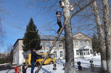 Сегодня на территории школы были развешаны отремонтированные скворечники.