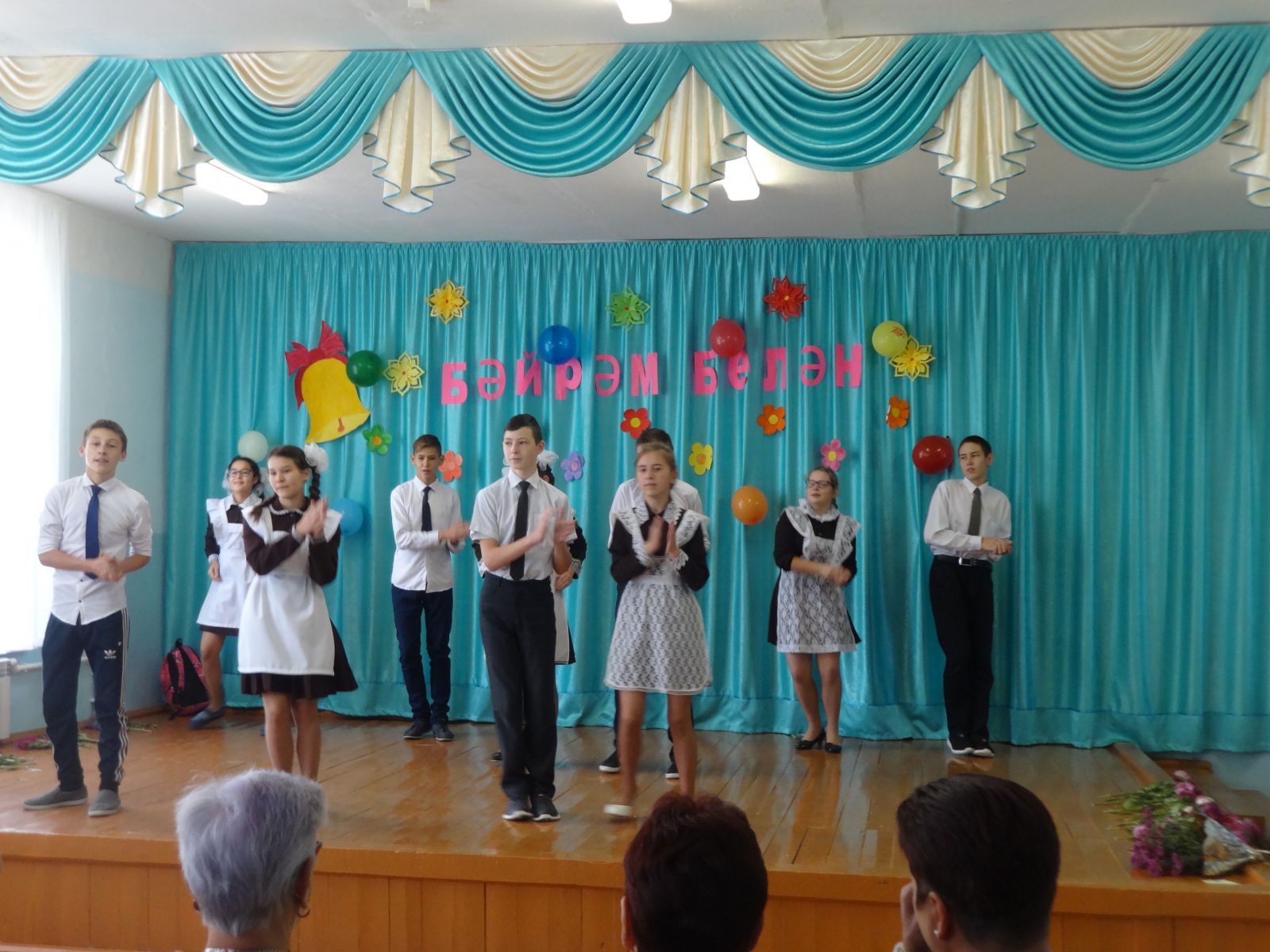 Бүген мәктәптә Укытучылар көне уңаеннан "Сез иң гүзәл кеше икәнсез" дип исемләнгән бәйрәм чыгышы булды. Укучылар концерт-монтаж, матур концерт номерлары күрсәттеләр.