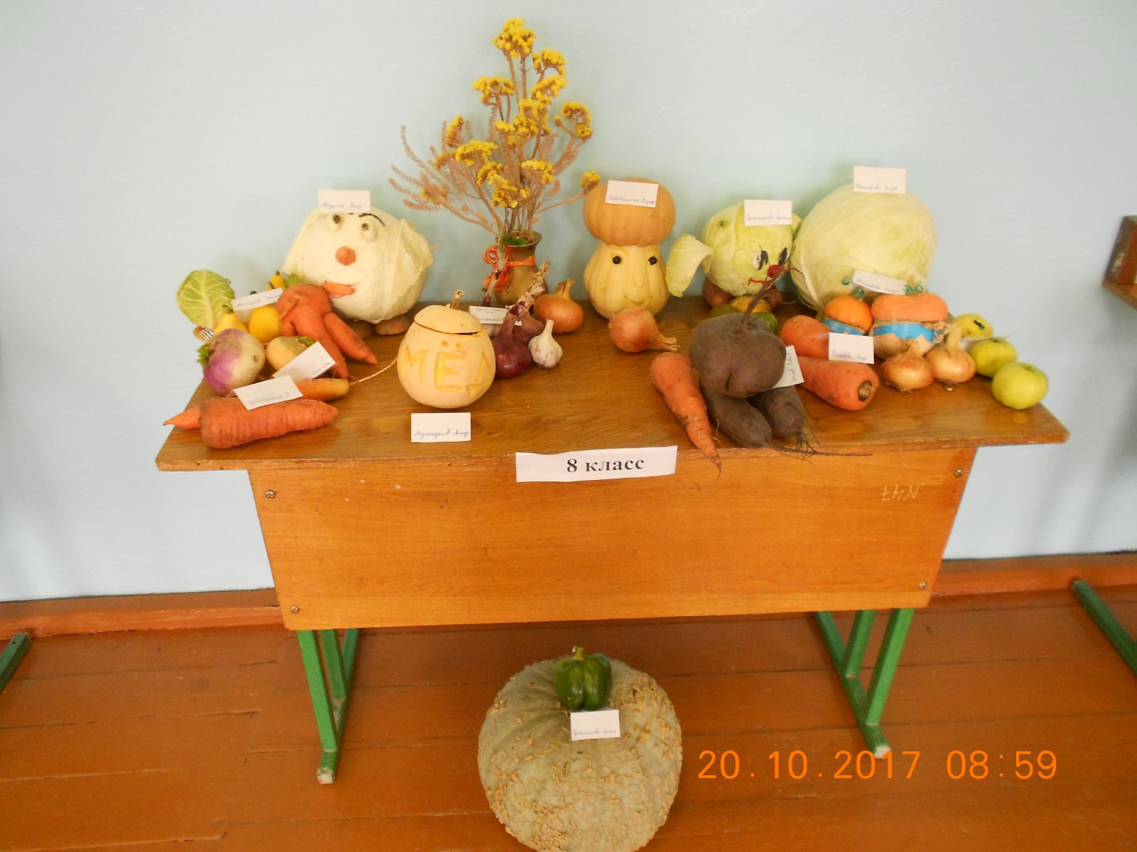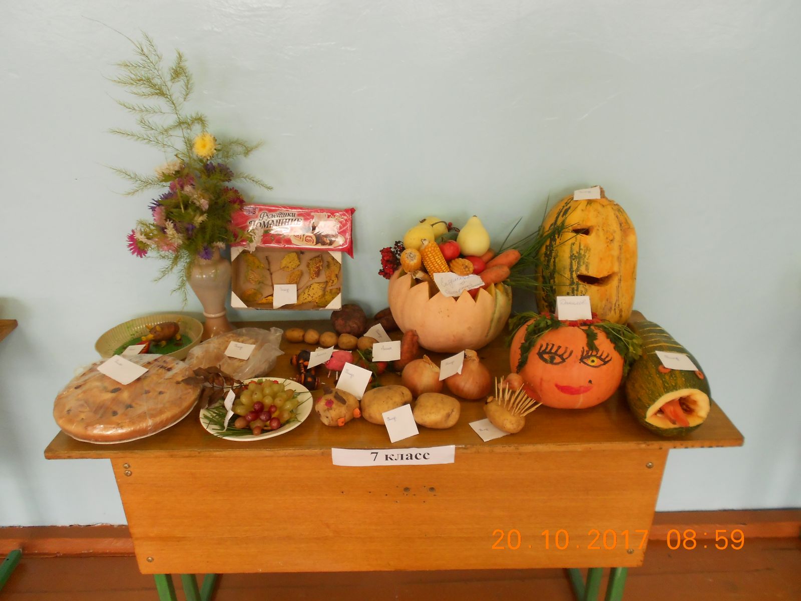 Бүген мәктәптә "Уңыш-2017" күргәзмәсе узды. Һәр класс "Иң мул" өстәл бәйгесендә катнашты. Балалар табигый материаллардан поделкалар, үзләре үстергән кызыклы формадагы , гигант булган яшелчәләрен алып килделәр. Иң актив катнашучыларны Көз кызы Сөмбелә билгеләп узды.