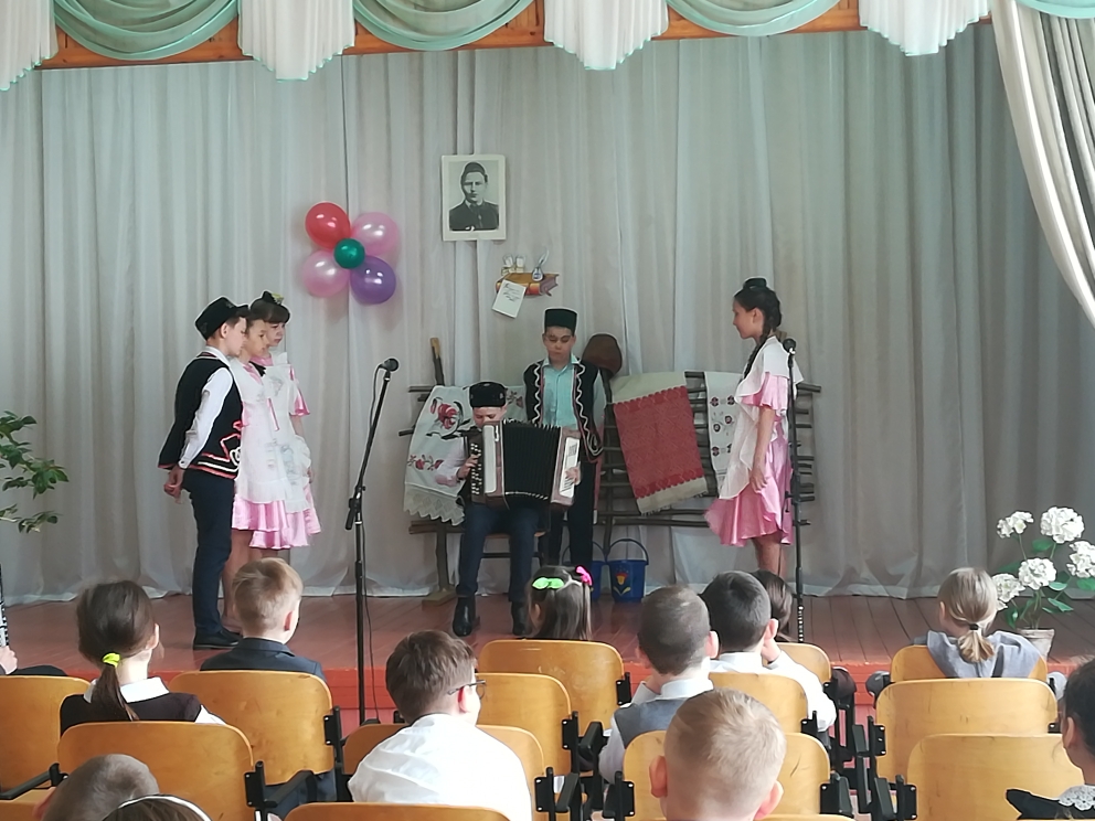 Опубликовано: 28.04.2022Мәктәбебездә Г.Тукай көннәре дәвам итә. Бүген 8а һәм 5а сыйныф укучылары, башлангыч сыйныф укучылары игътибарына, Г.Тукай туган көненә багышланган матур бәйрәм күрсәттеләр. Чара барышында шигырьләр сөйләнде, җырлар җырланды, “Чишмә буенда кичке уен” исемле театральләштерелгән фольклор кичәсе курсәтелде.